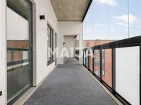 Tram 9B approx. 150 m. Bus stop approx. 50 m. Ilmala station approx. 350 m. Pasila station approx. 1.6 km. Mall of Tripla with extensive services approx. 1.5 km.