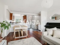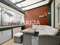 This three-level terraced house has 2 to 3 bedrooms that adapt flexibly to the needs of the family — downstairs the space serves as both work and hobby space. The spacious glazed balcony, which measures the entire apartment, provides a wonderful additional space for relaxing from spring to late autumn.