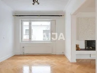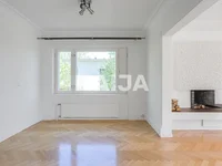 The middle floor opens to representative living areas: the very large living room is framed by the seascape of Tiiliruukinlahti, and the open fireplace from the 60s brings a dignified atmosphere to the space. The dining room and kitchen are located on the same floor and the rooms open to the courtyard with their own entrances.