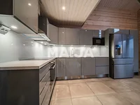This new high quality and atmospheric semi-detached house combines modern living comfort with traditional log construction. Warm living space 98m2. Spacious open kitchen, living room with fireplace for stovemakers, bedroom, 2 sleeping rooms, walk-in closet, bathroom, sauna, two toilets and entrance areas provide a functional and comfortable ensemble. A fireplace creates warmth and atmosphere, and remotely controlled electric heating ensures comfort in living in all seasons. Built with high quality materials such as Villeroy Boch large floor slab, finger paneling in the bathroom and sauna boards oiled aspen boards made at the carpenter's place. The backyard of the plot borders the park and overlooks the magnificent Kesängi Fell landscape. The holiday home includes a carport with a power outlet for charging the electric car and a warm storage room of 9 square meters with a drying cabinet — the perfect solution for those who enjoy the outdoors!