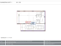 L'étage -1 de 114 m2 comprend un garage pour deux voitures, un débarras, des toilettes, un espace cantine et un espace salle de sport.