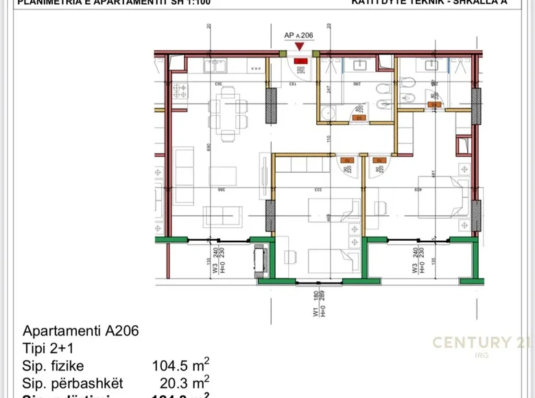 This wonderful 2+1 apartment is located in a new and quality complex that is being built near the city stadium in Elbasan, with completion within 18 months. The total area is 120 m² gross (100 m² net), on the second floor above the shops, with a south orientation. Its regular layout includes 2 bathrooms and the apartment will be delivered with full internal investments. The price is 108,000 euros.