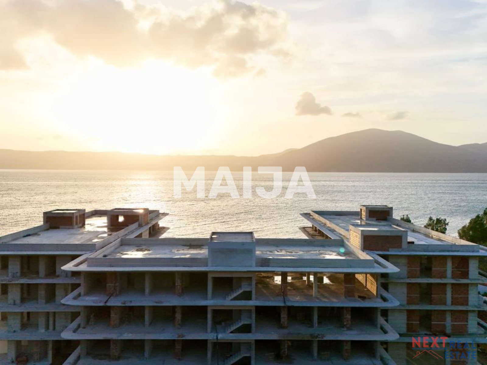 Résidence de luxe à Radhimë, première ligne de construction, avec vue panoramique sur le golfe de Vlorë et accès direct à la plage privée. Complexe résidentiel moderne de 4 étages avec architecture contemporaine, design de station balnéaire et construction de qualité.