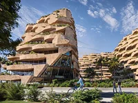 Le projet se distingue par son élégante façade avec des éléments en pierre, combinée avec une isolation acoustique et thermique avancée, ainsi que la verdure intégrée sur les balcons et les appartements avec des chantiers privés. Les espaces extérieurs sont conçus avec des plantes à feuilles persistantes tout au long de l'année, des systèmes d'irrigation automatique, et un entretien dédié, créant un environnement relaxant et naturel.