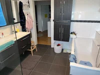 Modern, new and fully furnished terraced house with all-day sun in the first row in a quiet, family-friendly residential area in Graz St. Peter. The house is divided in a child and family-friendly manner and is equipped with both high quality and practical features. The low-energy wooden frame construction and solar thermal energy on the roof result in very low operating and heating costs. It has a large, open living-dining area with an integrated kitchen, 3 bedrooms or children's rooms, walk-in closet, large bathroom with toilet on the upper floor, a separate toilet on the ground floor and a storage room. There are 3 bedrooms on the upper floor, two of which have direct access to the balcony. The other, currently used as the master bedroom, has a walk-in closet and air conditioning. The spacious bathroom is equipped with a bathtub, walk-in shower, double sink, lattice radiator and a toilet. The window front towards the garden is equipped with electric roller shutters on the ground floor and with crank or belt operation in the remaining rooms. The house is heated using district heating. A roof-mounted solar system for hot water preparation is also installed. In addition, a decalcification system was installed in the basement. The entire house has a basement. The basement has an area of ​​approx. 60m², which is completely tiled and has a fully equipped hobby or party room. There is a paved double carport directly in front of the house. Following this is the lockable storage box, which offers space for bicycles, toys and garden tools. The entire garden area is fenced and the terrace was newly paved 2 years ago. In the summer months, a 6x3 meter electric awning provides enough shade to spend the afternoons comfortably on the terrace with family or friends.