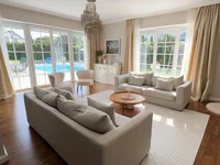 Un terrain extravagant et bien entretenu de 1280 m2 comprend une piscine extérieure, une aire de jeux, un barbecue et un immense jardin. La caractéristique principale du jardin luxueux est l'arc apporté d'Italie, il ajoute également un plus de classicisme et d'authenticité. Environ 306 m2 d'espace de vie et 6 pièces feront une impression indélébile sur les amateurs de classiques et de style anglais. Au rez-de-chaussée il y a un hall d'entrée, qui se transforme immédiatement en chambre d'hôtes. Le salon, en raison du grand nombre de fenêtres donnant sur le jardin, est très lumineux et spacieux. Si nécessaire, il est possible d'intégrer une cheminée pour encore plus de confort. Le hall s'ouvre dans une salle à manger, divisée par une cuisine. La cuisine est une autre caractéristique unique de cette maison. Une cuisine lumineuse, blanche, confortable, avec une vue sur le jardin intérieur, sera un rêve pour tout gardien du foyer. Au premier étage il y a une salle de bains et un passage vers le garage, qui accueille deux places de parking, il y a aussi un chargeur pour les voitures électriques. Le deuxième étage dispose de trois chambres et un bureau potentiel. Chaque chambre a sa propre salle de bains et douche, dont le design est unique, mais sont fabriqués dans un style classique et individuel. Dans la chambre principale, une partie du mur est peinte avec une afresco artisanale. De plus, au deuxième étage il y a une sortie vers le balcon de 10,40 m2, qui ouvre une vue sur l'attraction principale du village - le lac. La maison dispose d'un sous-sol, où vous pouvez trouver une autre chambre et une salle de bains, un dressing, un mini-gym, un sauna, une buanderie. La buanderie peut également être utilisée comme une salle de stockage en raison de sa superficie de 23 m2. La maison est également équipée d'un système d'alarme, de détecteurs de mouvement, de capteurs de fenêtres, de caméras de surveillance, de détecteurs d'incendie et de fumée, de climatisation. La maison incarne le luxe et la modernité et offre la maison idéale pour ceux qui recherchent une atmosphère de vie exclusive. Il est caractérisé par son emplacement calme et est un endroit idéal pour l'intimité et la détente. Si vous cherchez une propriété de première classe, alors cette villa sera sans aucun doute le choix optimal. L'emplacement est dans l'une des stations de golf les plus luxueuses en Autriche, dans un emplacement absolument calme et harmonieux, le village de Fontana, à 30 minutes du centre de Vienne. Profitez du niveau de vie élevé qui est présenté ici. Avec de nombreuses possibilités de loisirs comme le golf, le tennis, le spa, le fitness, la piscine et les restaurants de première classe, il y a quelque chose pour chaque goût. Idéal pour ceux qui recherchent le luxe et les vacances sur l'eau! Prix: 3.390.000 € Commission 3% du prix d'achat + TVA. Si vous êtes intéressé à consulter ou besoin d'informations supplémentaires, je serai heureux de vous aider. Vous pouvez me contacter par email ou par téléphone ou Nous attendons avec impatience votre réponse et espérons que vous aimerez cet appartement. Nous sommes sûrs que vous vous sentirez à l'aise dans cette maison confortable.