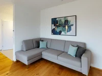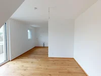 Le salon dispose de parquets de haute qualité et d'un agréable chauffage au sol qui procure une chaleur agréable. De là, vous pouvez atteindre le balcon accueillant, qui est parfait pour des heures de détente en plein air – que ce soit le petit déjeuner donnant sur le vert ou le jour pour finir.