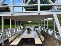 Dans le domaine tout est pensé au moindre détail: il y a des maisons avec des bains, il y a un accès à la rivière, des aires de loisirs autour du domaine entier.
