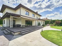 Un grand jardin paysager terrain d'une superficie de 15,64 acres avec pelouse et aménagement paysager en propriété privée. Le terrain comprend la maison principale avec un garage pour deux voitures et une terrasse spacieuse, une maison d'amis avec un espace SPA et une buanderie, une cuisine d'été, une piscine extérieure chauffée et une aire de jeux pour enfants. La zone est clôturée, il y a de nombreuses plantes et plantations décoratives le long du périmètre, un éclairage est fourni partout et les portes coulissantes d'entrée s'ouvrent avec une télécommande. Portail avec interphone vidéo. En plus de la clôture principale, une haie de thuyas a été plantée sur toute la parcelle ; à l'heure actuelle, leur hauteur est d'environ 3,5 mètres, ce qui crée une atmosphère de convivialité, d'intimité et un sentiment de sécurité.
