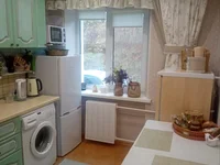 Cuisine 7,2 m2, un endroit très confortable dans l'appartement. Il y a du liège par terre. La colonne de gaz est en bon état et est régulièrement vérifiée. Il y a toujours de l'eau chaude !
