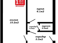 La superficie totale de l'appartement est de 26.4 m2, résidentiel 15.2 m2, cuisine 6.1 m2, hauteur du plafond - 3.02 m.