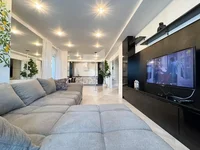 L'appartement est équipé de tout le nécessaire pour une vie confortable. Des matériaux de qualité sont utilisés dans la décoration. Granit au sol, planchers chauffés. Cuisine avec appareils intégrés: réfrigérateur et congélateur, lave-vaisselle, plaque de cuisson, four. Il y a une buanderie séparée équipée de machines à sécher et à laver. Une plomberie de haute qualité, il y a une chaudière pour chauffer l'eau.