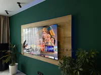 La zone de loisirs est séparée par un comptoir de bar, qui crée une atmosphère confortable pour les réunions avec des amis. Le salon dispose d'un climatiseur à onduleur et d'une télévision avec éclairage séparé, et les fenêtres au sol remplissent l'espace de lumière et créent une sensation de grande superficie.