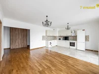 Il y a du sol partout dans l'appartement. Le salon est lumineux, spacieux 27.4m2. Les murs sont peints en blanc. Grande loggia avec sortie dans le salon. Deux dans la chambre.