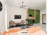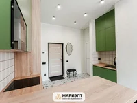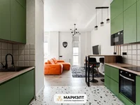 Réparation design moderne avec une combinaison intéressante de couleurs à l'intérieur. Seuls des matériaux de construction de haute qualité sont utilisés. Les murs sont doublés et collés avec du papier peint italien. Il y a des carreaux sur le sol. Une plomberie de haute qualité est installée dans la salle de bains.