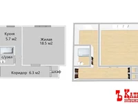 Spacieux couloir, salle de bains combinée. Salle de séjour 18,5 m2. Cuisine 5,7 m2. Fenêtres en PVC installées. Le revêtement de sol est linoléum.