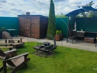 Il y a aussi un gril avec une canopée, un hozblock pour l'équipement de jardin, un bûcheron. Un endroit pour se reposer, se détendre et se rassembler près du feu. En face de la maison à la frontière du site il y a un endroit pour garer une voiture.
