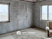 Des fenêtres en PVC sont installées. À l'intérieur de la maison est une finition de projet: les murs sont plâtrés, chape de béton du sol, hypothéqué pour les communications.