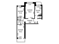 Aménagement rationnel: les salons sont isolés, une grande cuisine est de 8 m2. Les fenêtres font face aux côtés opposés de la maison, ce qui rend l'appartement encore plus spacieux et lumineux.