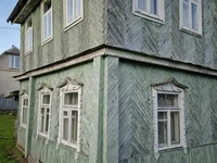Dans la maison avec une véranda ouverte, nous entrons dans le salon d'entrée avec une petite cuisine. Il y a 2 salons à cet étage. Il y a une douche derrière les escaliers. Le troisième grand salon - sur le grenier, avec accès au balcon - admirer la nature dans un bel endroit. Le poêle a été démonté, mais la possibilité technique de l'organiser ou la cheminée est restée. L'eau saisonnière est diluée sur le site et dans la maison ouverte. La maison est décorée de dentelle en bois sculpté, mais a déjà besoin de peinture.