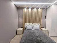 Dans la cuisine intégrée casque avec électroménager, réfrigérateur. L'appartement dispose d'un système d'alarme, Wi-Fi, chauffage au sol électrique, filtres pour l'eau chaude / froide, un compteur de chaleur avec régulateurs.
