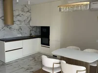 La zone de l'appartement sur le NSS est 74.7 m2. Fenêtres panoramiques dans tout l'appartement. Cuisine-salon, chambre, chambre sous le bureau ou la chambre des enfants, dressing pour ranger des objets avec lave-linge installé, salle de bains combinée, loggia spacieuse pour vos idées. Équipement intégré de haute qualité, y compris panneau de cuisson à induction, lave-vaisselle, lave-linge, réfrigérateur, four. Les meubles sont faits sur commande individuelle. Interrupteurs de passe dilués et climatisation installés.