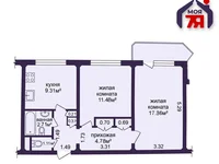 - Oui. La superficie totale de l'appartement est de 54 mètres carrés, résidentiel - 29 mètres carrés. La disposition est pratique avec deux chambres impraticables.
