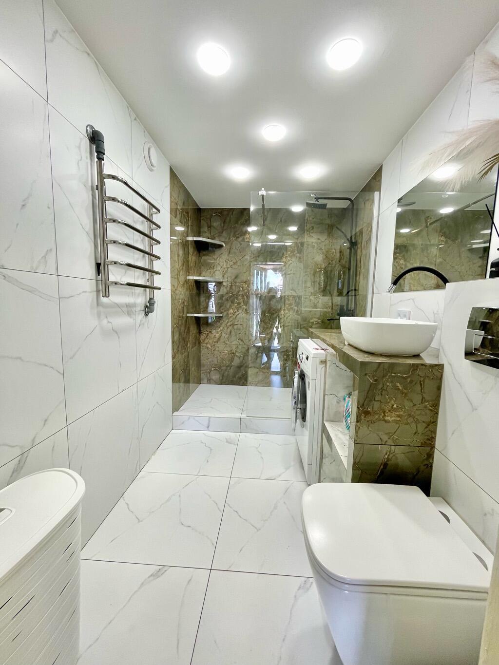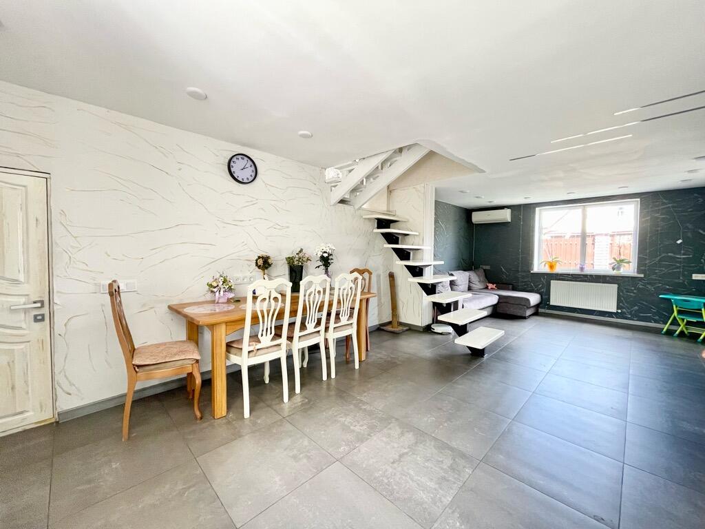 Tous les murs sont alignés, collés, sur les planchers du premier étage - carreaux chauffés, sur le deuxième - plancher. Des portes intérieures du tableau sont installées, les escaliers au deuxième étage sont également du tableau. La maison dispose d'une salle de bains au premier étage (sol chauffant) et la deuxième salle de bains au deuxième étage.