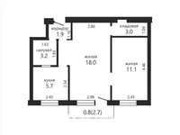 Superficie: total - 42,9 m2, résidentiel - 32,1 m2, cuisine - 5,7 m2. La hauteur du plafond est de 2,54 m.