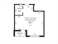 Étage: 9/16 NSS superficie: 41,8 m2 Total: 40 m2 Résidentiel: 35,7 m2 Plafonds: 2,71 mAnnée de construction: 2022 Matériel mural: frame-block Logia, fenêtres panoramiques, côté sud À propos de la maison: