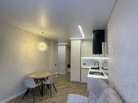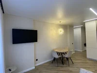 L'appartement a été rénové: plafonds stretch, éclairage à plusieurs niveaux, réglé par le panneau de commande. Les murs sont alignés et collés avec du papier peint, les portes modernes sont éco-spoo avec des accessoires magnétiques, la porte d'entrée est en métal. Salle de bain combinée, mettre les carreaux italiens, et le chauffe-eau installé Txermex. Chambre confortable, avec matelas orthopédique, d'où il y a une sortie vers la loggia. Le salon-cuisine combiné est équipé de l'équipement intégré nécessaire: un panneau de cuisson à induction et un four à micro-ondes - par MAUNFELD, une hotte Hietzee, un réfrigérateur intégré.