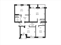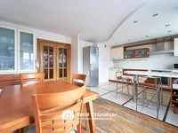 Appartement spacieux d'une superficie totale de 122,2 mètres carrés, situé au cinquième étage d'un immeuble de dix étages. Trois chambres isolées, une spacieuse cuisine-salle à manger (21.2 m2), 2 salles de bains avec baignoire, cabine de douche et chaudière, 2 toilettes. Fenêtres en bois double vitrage dans les chambres, toutes les 3 loggias avec vitrage (fenêtres PVC). Armoires intégrées. Sols, sols, carreaux. Porte avant en métal. Des réparations à l'entrée ont été effectuées en 2025. L'entrée à la cour de la maison est limitée par une barrière.