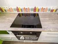 Murs et plafond - finition pour la peinture Luminaire en zone: espace de travail + salle à manger Lavage en pierre BLANCO (Allemagne) + mélangeur GroheTechnics: Plaque d'induction Bosch Réfrigérateur Bosch Cooler No Frost Kit cuisine avec: accessoires de qualité et systèmes de stockage fournis par la connexion du lave-vaisselle Éditer le groupe: table et chaises IKEAD et territoire