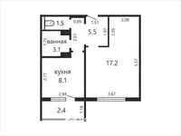 Surface habitable - 17,2 m2 Cuisine - 8,1 m2 - zone fonctionnelle et compétente Hauteur du plafond - 2,55 mLoggia glacé Appartement avec rénovation moderne, entièrement équipé et prêt pour une occupation rapide - format venir et vivre.