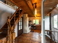 La maison est très chaleureuse et lumineuse. Bonne fondation en béton, toit en ardoise. Dans la maison il y a des fenêtres de haute qualité (fenêtres en verre). Dans toute la maison, les murs, le plancher et le plafond sont en bois naturel, traité avec imprégnation et vernis, d'excellente qualité, les planchers ne crèvent pas. L'escalier est fort du bois naturel. La maison convient à la fois à la campagne et à la vie toute l'année.