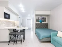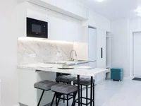 L'appartement a été réparé dans des couleurs modernes avec l'utilisation de matériaux de qualité.