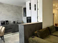 L'appartement a fait des réparations élégantes de haute qualité: parquet au sol et tuiles (chauffées), plomberie allemande, tuiles, placards intégrés, cuisine équipée. Tous les équipements Bosh - lave-vaisselle, plaque de cuisson, four, réfrigérateur intégré, micro-ondes intégré.