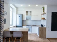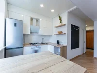 L'appartement a été réparé avec des matériaux importés, équipés de meubles intégrés. Dans la cuisine, une connexion au poêle électrique et une sortie sous le lave-vaisselle sont préparées. Il y a un grand dressing. En outre, un sous-sol spacieux est équipé. Les voisins sont amis et prospères. Dans la cour il y a une dentisterie, une polyclinique, un bureau du procureur, un abri anti-bombe modernisé, suffisamment de places de stationnement, un stade fermé pour les résidents, un espace d'entraînement derrière la maison. Les environs sont bien contrôlés et protégés.