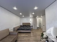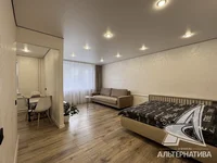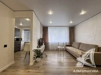 Appartement de 1 chambre, Brest, avenue Masherov, 1961, 1 / 5 brique, 30.6 / 30.6 / 18.1 / 5.7, salle de bain combinée, fenêtres à double vitrage, porte avant métallique, plafonds extensibles (2,52 m), planchers (placés sur une planche) - stratifié, sur les murs garniture décorative avec plâtre, carreaux modernes dans la salle de bains, plomberie, bain acrylique, tuyaux de plomberie sont remplacés, une nouvelle maison électrique est installée. Tous les meubles et appareils restent dans l'appartement. Appartement avec des solutions de design individuelles. Une plinthe haute. Dans la cour il y a une aire de jeux, un parking pour les voitures. Regarde de plus près.