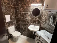 Une salle de bains moderne avec des installations de haute qualité et une douche.