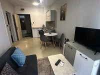 Nous vous proposons un appartement compact d'une pièce avec vue partielle sur la piscine et une belle vue sur la cour bien entretenue dans le complexe Domus à vendre. Le développement est situé dans un quartier calme à Sveti Vlas, à seulement 250 mètres de la plage et de la mer. L'appartement est au rez-de-chaussée et a une surface habitable de 43 mètres carrés. Il est offert entièrement meublé et équipé, en très bon état, et prêt pour un déménagement immédiat.
