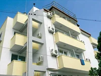a small family-run hotel, conveniently located a 10-minute drive away from the beach of Ravda. The three-storey building, saturated with an atmosphere of tranquil coziness has 2 apartments, 1 studio, 7 double and 3 deluxe double rooms each which is equipped with private bathroom, bathroom, cable TV TV, telephones with external and internal lines, internet access, air conditioning. All suites and rooms have spacious terraces. Elegant and stylish furnishings complement those needed for relaxation and the rest of the guests' comfort. The hotel has a rich restaurant with the unique marine atmosphere, complemented by the varied menu of the the most attractive prices and - of course - first class and discreet servicing of all guests. The panoramic terrace of the hotel, with its day bar, offers guests an unforgettable view, and for the earliest - coffee with the taste of the rising sun. The building is new, built 3 years ago. It is in its construction used modern materials and technologies. In 2007, the third season will be running. The building has ground floor and 3 floors. The kitchen and the storerooms are in the underground floor. To The third floor leads stairs that are easily overcome. On the 1st floor are located: reception, bistro, shop and toilets. Reception has 6 pcs. safes for storing money and valuables, first aid kit with the most commonly used medicines and life-saving medicines, telephone, fax, internet connection. 24-hour on-call time is provided at the reception, and during night has security. Upon special arrangement, the reception is available is also spoken in Polish. The bistro is designed for 40 people, with the option of a meal and drinking to be used to organize the following events: birthdays and name days, own or external amateur programs, watching important for Poles programs, sports competitions and more. the video wall. Shop where normal prices can be found: any goods from the first need for personal hygiene, mineral waters, juices, beer, chocolate products and more. The kitchen and storage rooms for food products meet the requirements ISO and HCCP. The building has its own power generator. Price without VAT
