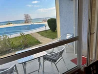This charming two-room apartment is located on the ground floor of a well-maintained residential complex in Sveti Vlas, a popular holiday destination on the beautiful Bulgarian Black Sea coast. The apartment offers stunning sea views and is just a few minutes’ walk from the beach, making it an ideal choice for holidays or as an investment for vacation rentals.