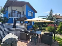 Devant la maison se trouvent une aire de loisirs, un puits, un atelier et des espaces verts aménagés.