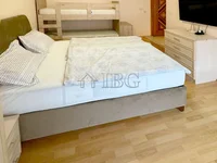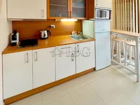 Le studio est de 43 m2 et dispose d'un hall d'entrée, une grande chambre avec coin couchage et salle à manger, cuisine séparée, un balcon spacieux et une salle de bains avec douche, WC et un lavabo. L'appartement est entièrement meublé et équipé comme indiqué sur les photos.