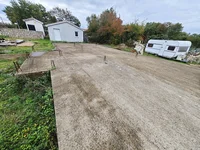The plot already features a built garage and a partially completed foundation slab, as well as a cistern and a septic tank. All utility infrastructure is fully connected to the plot, and all communal fees have been settled. A significant advantage of this property is the valid building permit for the construction of a building with four apartments, further enhancing the value and appeal of the land.
