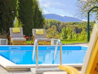 Maison de vacances indépendante d'une surface habitable de 143,77m2, construite en 2005 sur un terrain de 3 232m2 avec un grand jardin, terrasses, piscine, espaces extérieurs pour se reposer et manger, aire de jeux pour enfants et parking.