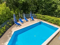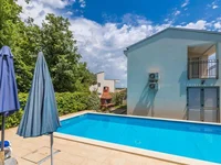 Cette belle villa de 2 étages d'un total de 200 m2 est située dans une petite ville près de la ville de Krk. Le terrain est d'environ 700 m2 et est situé à environ 1200 mètres de la mer. Dans chacune des deux unités il y a une salle de bains, une cuisine, une salle à manger et un salon, d'où il y a accès à une terrasse et un jardin magnifiquement paysagé avec une piscine chauffée au soleil, un jardin, un barbecue et une aire de jeux pour enfants. Au premier étage il y a une salle de bains, trois chambres et un balcon avec une belle vue. L'établissement est climatisé et il y a plusieurs places de stationnement sur le terrain. L'eau et la piscine sont chauffées à l'aide de capteurs solaires.