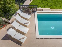 Non loin de Rabac et de Labin, dans un charmant établissement côtier, un nouveau bâtiment attend votre attention, offrant une vue panoramique sur la mer. Niché dans un quartier tranquille, cette propriété dispose de vues qui s'étendent d'Učka à la ville de Rijeka, englobant les îles de Kvarner et la mer Adriatique scintillante. Sa position offre une vue enchanteresse et inégalée. Caractérisée par une conception moderne, cette habitation a été construite à l'aide de matériaux de qualité supérieure, conformément aux normes les plus élevées en matière de construction résidentielle. La conception est fondée sur le terrain en cascade, qui intègre partiellement la structure dans le paysage. Son orientation capte les vues sur la mer cerulienne et les environs captivants, fusionnant habilement les frontières entre l'extérieur et l'intérieur.