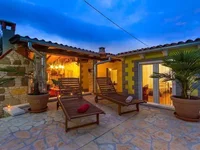 A smaller house with a total surface of 50m2 consists of a living room with a kitchen, two bedrooms and a bathroom. The house is fully furnished. In front, there is a very nice common tavern for socializing. Covered and equipped with a kitchen and a fireplace, the total area is 26 m2.
